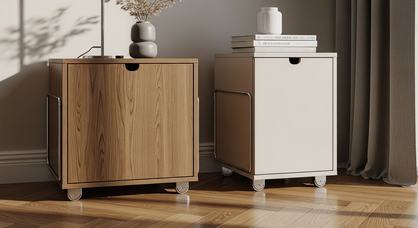 Kompakt depolama modülleri çoğu zaman alan kazanmak için tercih edilir; ancak yanlış alt yapı kullanıldığında bu avantajın bir kısmı kaybedilebilir. İnce yapılı bir depolama dolabının altında gereğinden büyük veya kaba bir sistem olduğunda, ürün kendi yalın karakterinden uzaklaşır. Bu nedenle kompakt tasarımlı depolama parçalarında dar gövde tekerlekler çok daha dengeli bir çözüm sunabilir.