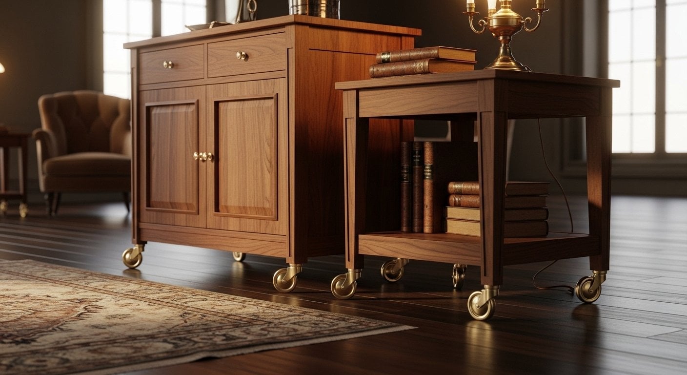 Dekoratif mobilyalarda hareket özelliği bazen yalnızca pratik bir katkı gibi düşünülür. Oysa bazı tasarımlarda hareketli yapı, mobilyanın karakterine doğrudan hizmet eder. Özellikle klasik servis arabalarında, küçük içecek sehpalarında, dikiş masalarında veya taşınabilir tamamlayıcı ünitelerde pirinç tekerlekler, işlev ile estetiği aynı çizgide buluşturur.